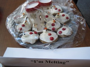 Below is a picture of the melting snowmen cookies that placed first in the contest.