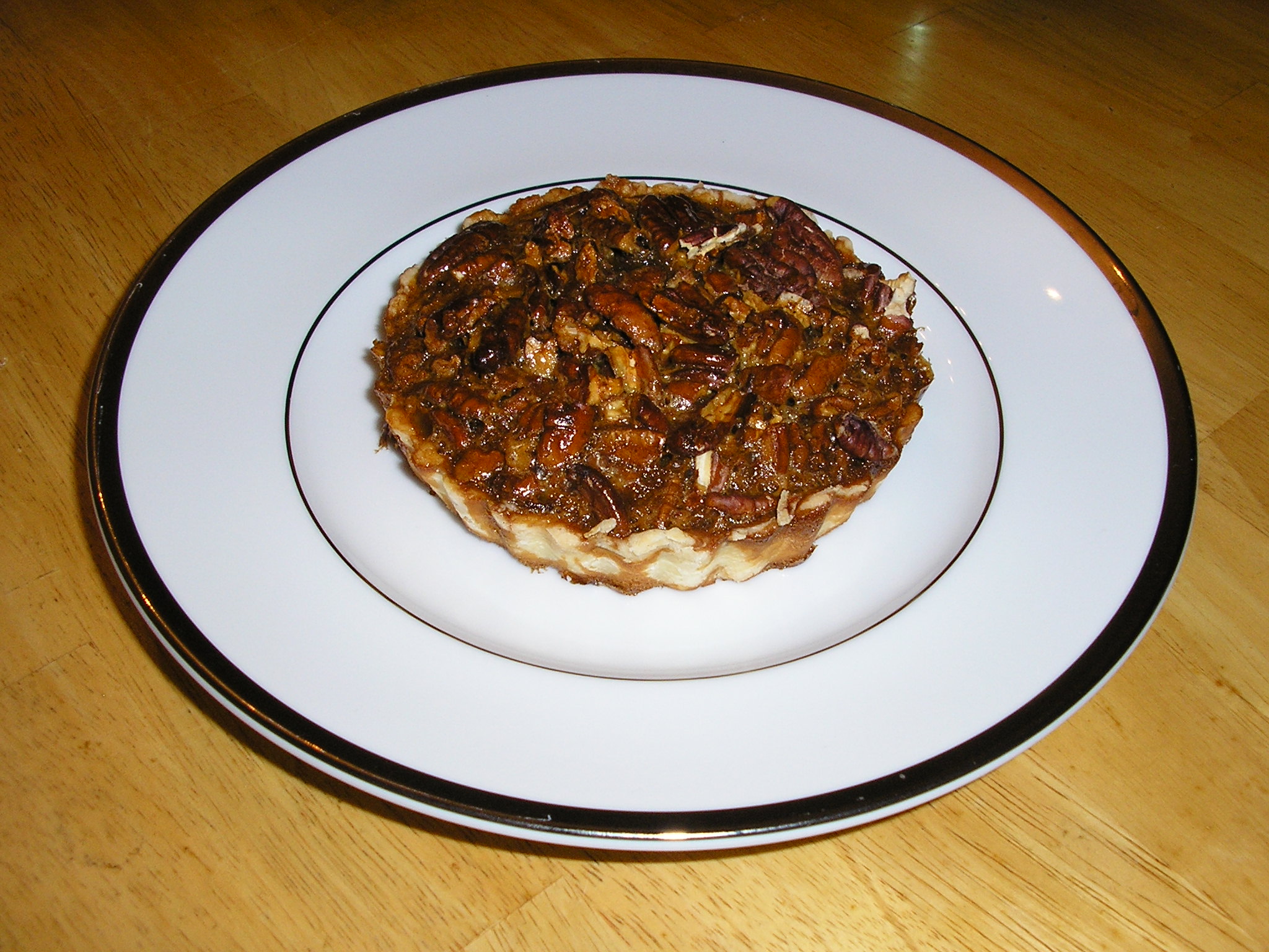 My family really likes pecan pie so I went in search of my favourite pecan pie recipe.  I only had to try 2 because John Thorne’s Pecan Pie from the book Outlaw Cook was such a huge success.  For the pie crust, I used the recipe that I like from JoyofBAKING.com.  Also, I love making miniature or individual sized foods so I used small tart pans with this recipe.  I served it for dessert when my family was visiting and they couldn’t get enough.  Ed liked it so much he refused to let his co-workers try some, haha, my little piggy  😉  I love my pecan pie warm with vanilla ice cream.