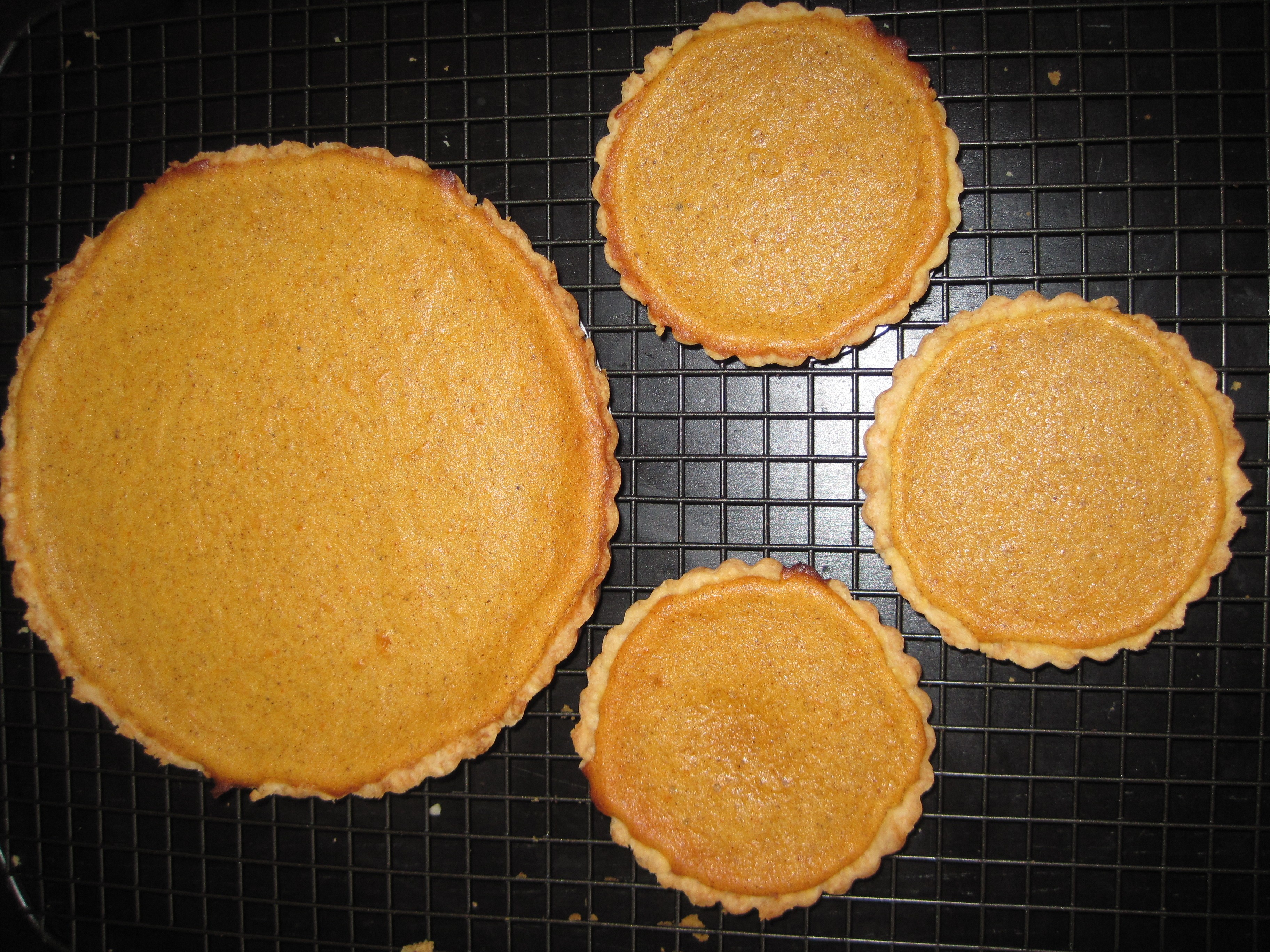My family and Ed’s family love this sweet potato pie. It’s quite a bit of work so I only make it once every 3 years (despite their constant requests for more). But every time I make it, I make a few 9″ pies and several individual sized pies (I love making miniature foods). Note that Tyler Florence suggests a crunchy cranberry topping to go with this, but I’ve never felt that my pies needed it.