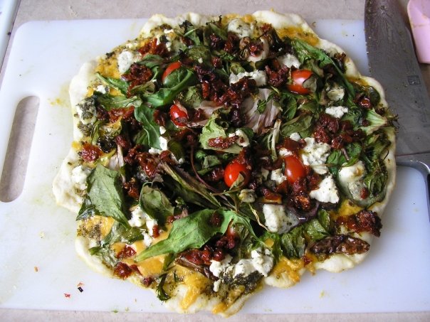 I love love love pizza – from the greasy generic Pizza Pizza to pretentious gourmet pizzas. When I discovered how easy (and cheap) it is to make your own pizza dough from scratch, I went crazy with it, haha. I even bought this “band saw” pizza cutter from Fred and friends. I personally don’t like kneading dough so I prefer to use my food processor for pizza dough. Some of the variations that I’ve tried include (but aren’t limited to):