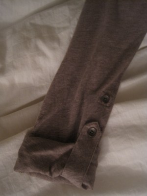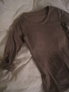 I bought a shirt today that I only intend on wearing during my lengthy cooking sessions.  This was my first time buying “cooking clothes”.  I usually cook in oversized, food-stained t shirts, but this soft, long sleeved t-shirt has buttons along the arms that allow you to button your sleeves up.  It’s perfect for cooking!  I don’t think this is the beginning of a good thing though…  I never saw this day coming and I feel ridiculous for designating new clothes to cooking.  If this becomes a habit, I’ll have to create a separate category haha.  My only justification is that it was on sale for $9 at The Gap.  Has anyone else done this?  I’d love to hear peoples’ comments about this  🙂
