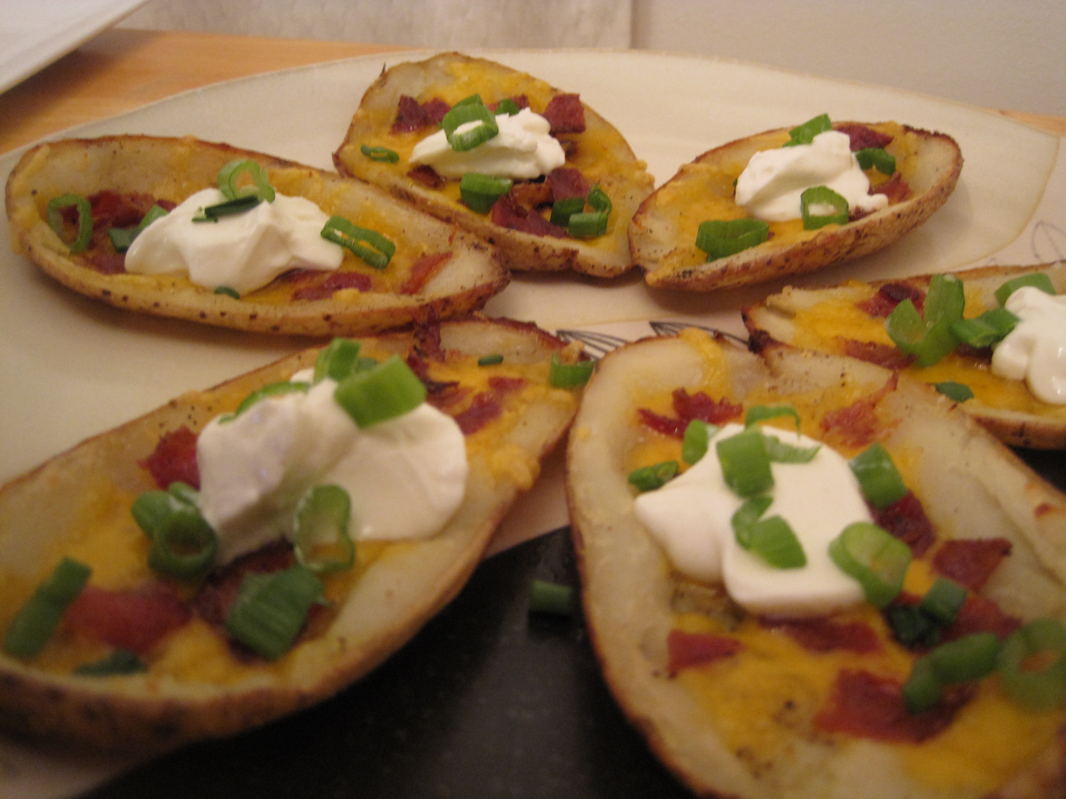 Note: Restaurants deep fry their potato skins. You could do this in vegetable oil heated to 350 F until crispy, but I prefer to bake mine.