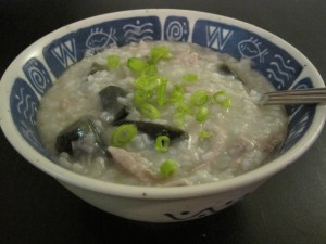 Cool, I usually eat pork and century egg congee ;] ‘Cept that my mom puts the salted pork in the congee at the beginning. I tried to make my own congee the other day since I’m in another city for school, and to save time, I tried to make it using the slow cooker. The result made me sad. Thus, next time, I will go to the stove top or the mother.