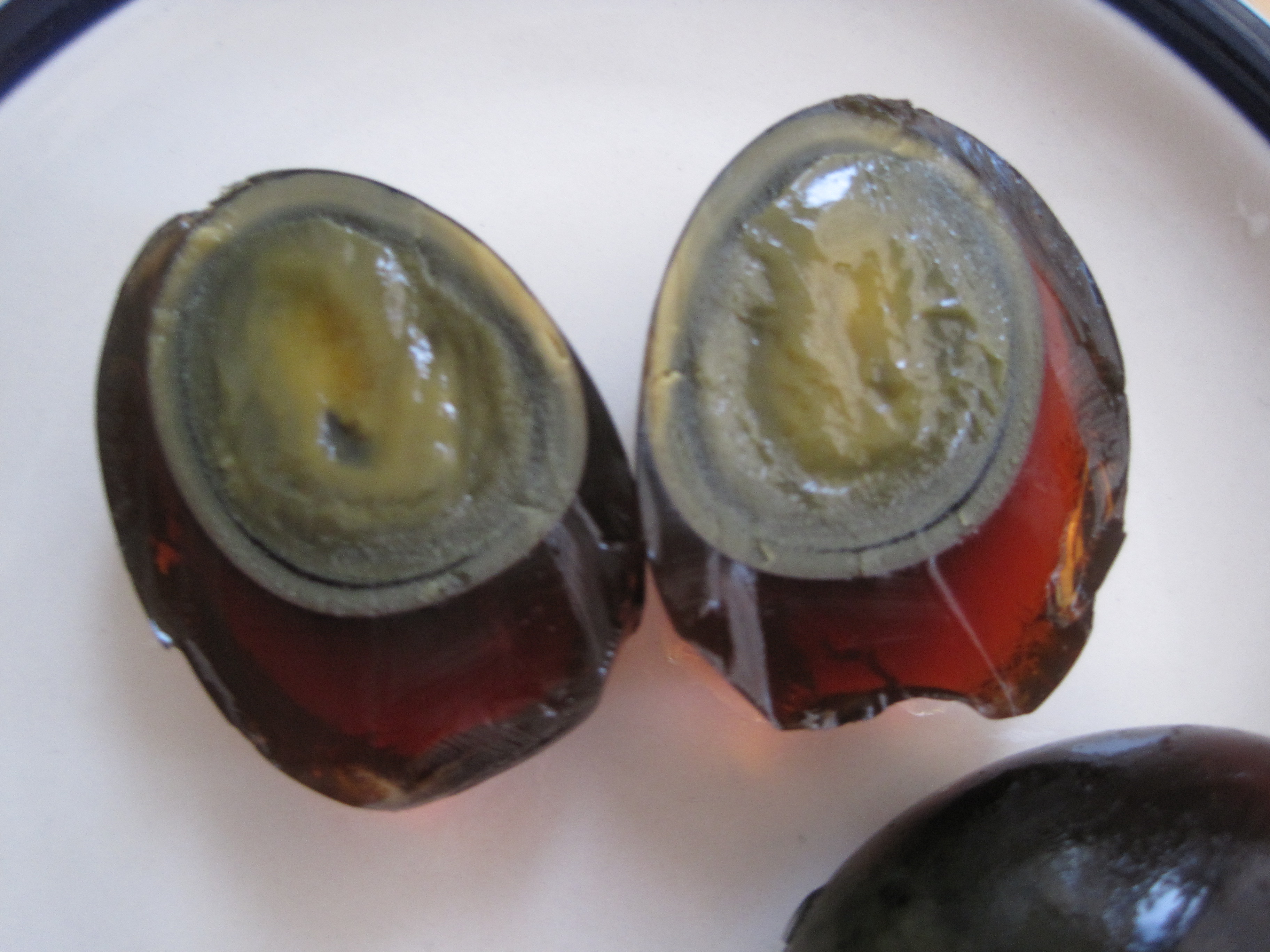 2 preserved duck eggs (also known as century or hundred year old egg)