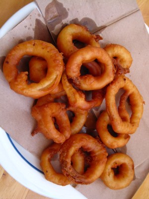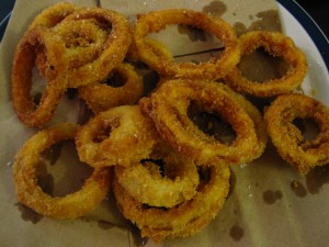 The first recipe is for battered onion rings.  This one takes the least amount of time to prepare.  If you cut your onion rings thicker (1/2 inch) and if you have a thick enough batter, you will get a thick coating that’s crunchy and soft.  They’re different from what you normally get in restaurants and bars, so I really like them.  The second recipe is for basic onion rings that are pre-soaked in milk and can be coated with your choice of flour, bread crumbs, cracker meal, or cornmeal.  This takes the most amount of time to prepare.  The third recipe is for panko crumb coated onion rings.  In my opinion, these had the most crunch and the texture is unique to that of classic onion rings.  These were more tedious to make than the basic onion rings.  Before you choose a recipe, keep in mind what you’re serving them with.  For example, the battered onion rings would be great on their own with beer, but you might prefer the panko coated onion rings if you’re serving them with burgers.