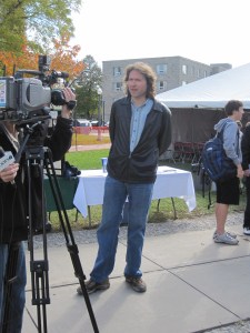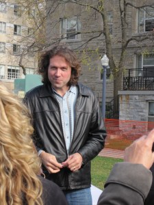 My first thought – after “I can’t believe I’m actually meeting him” – was that he’s even bigger and taller than I was expecting.  I was expecting him to be a big guy since he always towers over everyone on TV, but he’s more like a [gentle] giant.  Props to his camera crews for fitting him into every shot so well  ;).  He was dressed comfortably and seemed very much at ease as he made his way through the event and interview.  Watching his shows, I’ve always thought that he seems like a nice person, and from what I could tell from the brief moment that I observed him and the seconds that we spoke, he’s a Very nice person.  He was smiling the whole time, he graciously stopped to take pictures with everyone that asked for one, and he shook hands with every employee that he met.