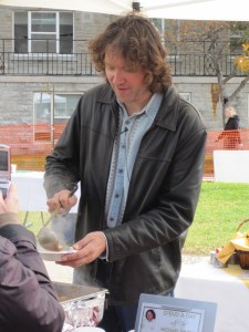 Chef Michael Smith is a Canadian chef that has several TV shows – Chef at Home, Chef Abroad, Chef at Large, and The Inn Chef.  I think it was his “cooking without a recipe” approach that first made him ‘TV famous’.  On October 26, 2009, he came to Queen’s University in Kingston, ON, Canada, to promote his new cookbook, The Best of Chef at Home.  I went to see him at Leonard Hall cafeteria where he was serving bowls of chicken stew, and I was so excited when he personally handed me one.