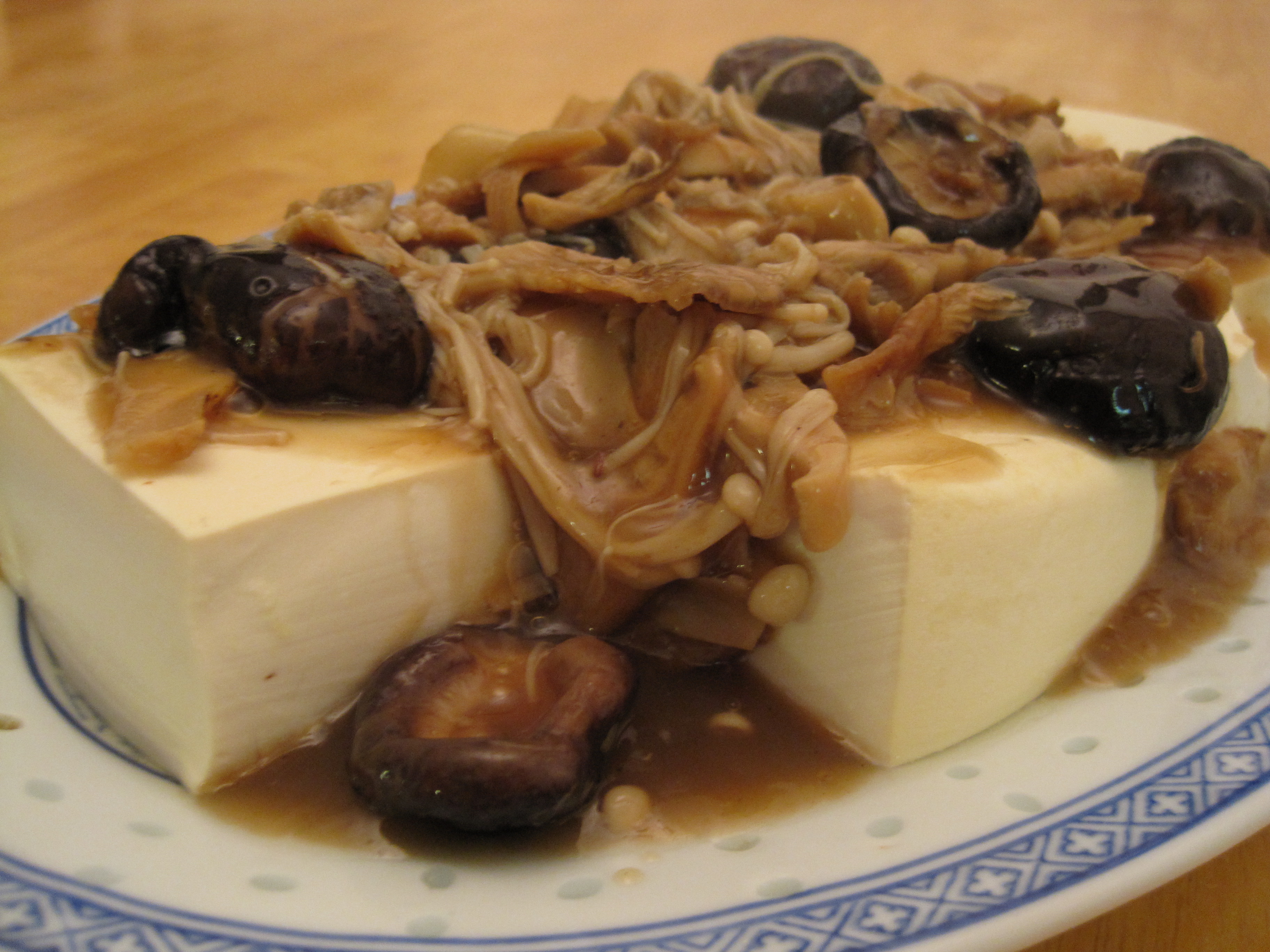 I used a combination of asian mushrooms (fresh and dried) to make a hearty Chinese gravy that is quick and easy to make. I served it over a plate of steamed soft tofu. You could also serve this mushroom gravy over steamed broccoli or a plate of stir fried Chinese vegetables.