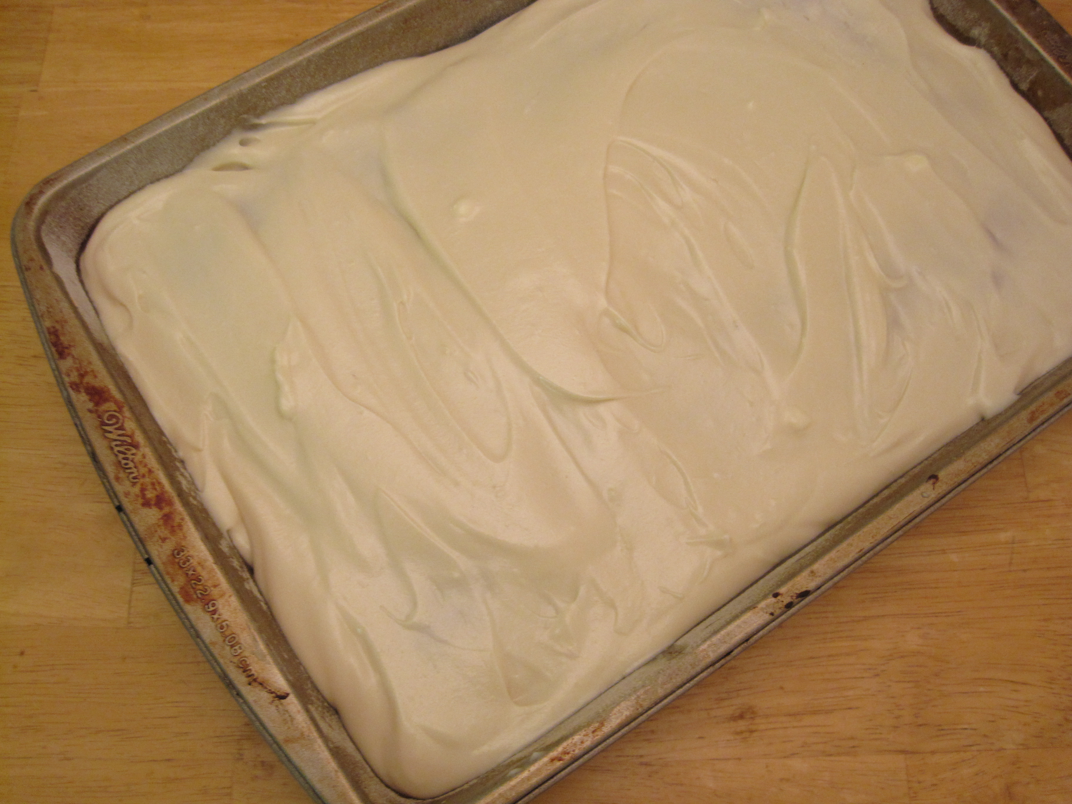 Recipe doesn’t say when to add the butter to the icing; I added it right after the vanilla, seemed to do the trick. The cake smells wonderful – and I’m letting it cool overnight, but I think I’ll have to try it in the morning. 🙂