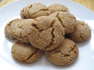 A few months ago, my sister requested ginger molasses cookies or gingersnaps, so I did some recipe testing and discovered the best recipe just in time for the holidays.  All of the other cookies that I made tasted fine, but none of them blew me away.  This recipe, however, produced the most amazing crunchy and chewy texture.  Everyone that tried them Loved them.  I don’t think I’ve ever seen Ed and Krystal eat so many cookies in one sitting.  Furthermore, my housemate – who is as critical as I am about food – asked for the recipe; and my little brother – whom I almost never hear from – texted me just to say, and I quote, “Man Alison, great cookies”.  That may have been the best compliment I have ever received.  😉