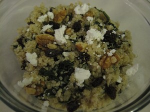 Quinoa Salad with Raisins, Spinach, and Goat Cheese