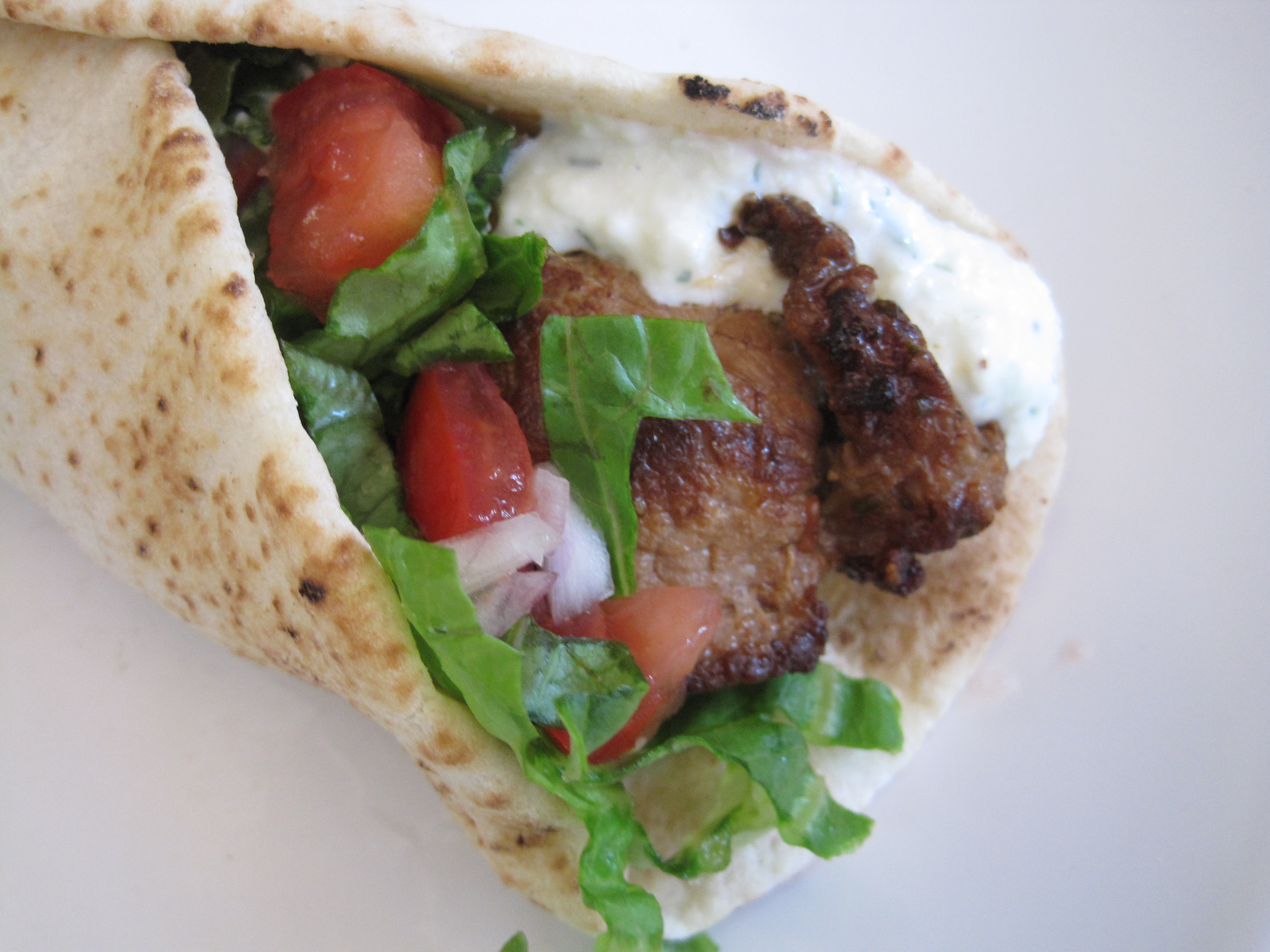 Pork Souvlaki on Pita with Homemade Tzatziki