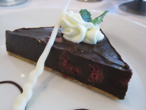 The lunch and dinner menus changed each day. The options sounded great, but the first two days’ of lunch and dinner in the dining room were terribly disappointing. In fact, the steak that we ordered was too tough to chew and was literally a choking hazard. But the food drastically improved by the third day and then became very enjoyable and on par with the Princess dinner. In fact, the chocolate raspberry tart was the best chocolate tart that I have ever had (photo below). The crust was buttery, sweet, crunchy, and unbelievably good. I also highly recommend the prime rib dinner and the scallop dinner.