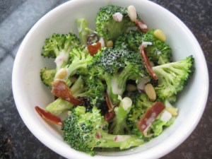 I don’t actually like broccoli, but I really like this salad.  Everyone that has ever tried it has loved it.  In fact, I made it for my dad’s packed lunch recently, and he said that it was the best salad he has ever had.  It’s perfect for bbqs, pot lucks, and picnics, because you can make it in advance.