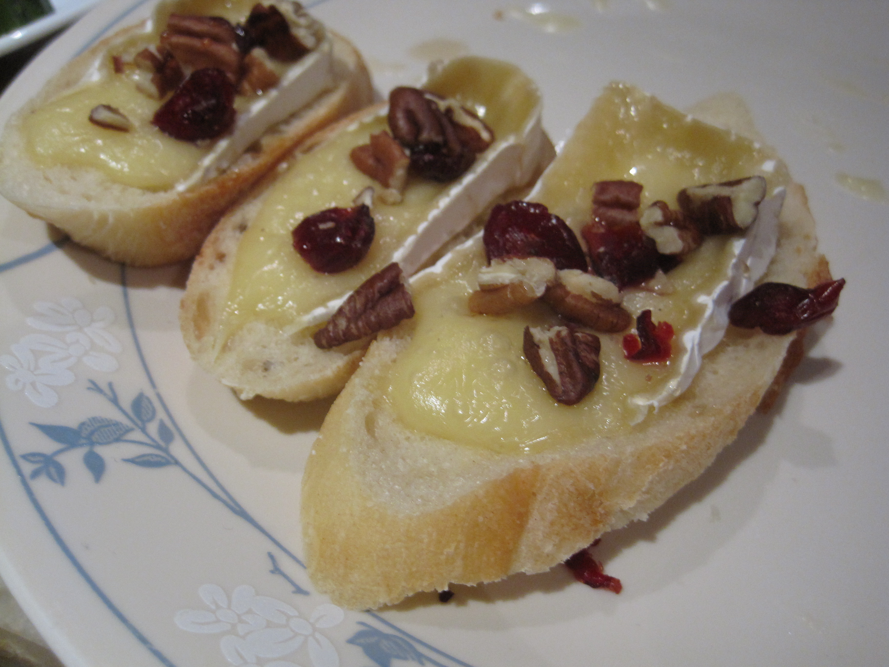Maple Drizzled Baked Brie Crostini with Craisins and Pecans Recipe