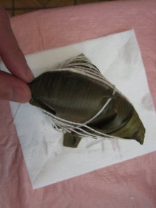 This photo was taken after we had already started eating the joong. Note that they don’t come out of the wrapping broken like this.
