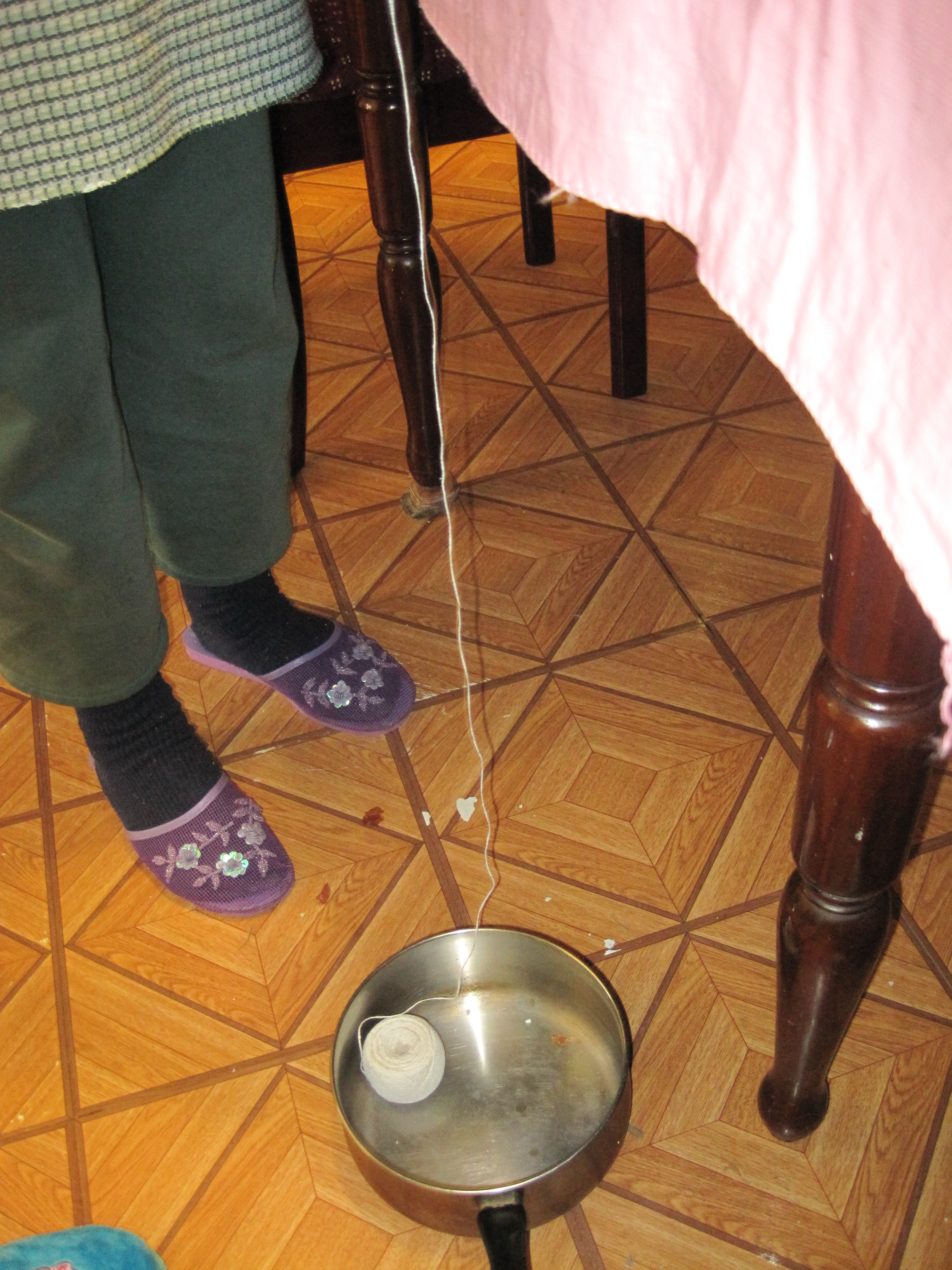 This is how my grandma sets up her kitchen twine so that she can easily pull out more string as she wraps her joong.