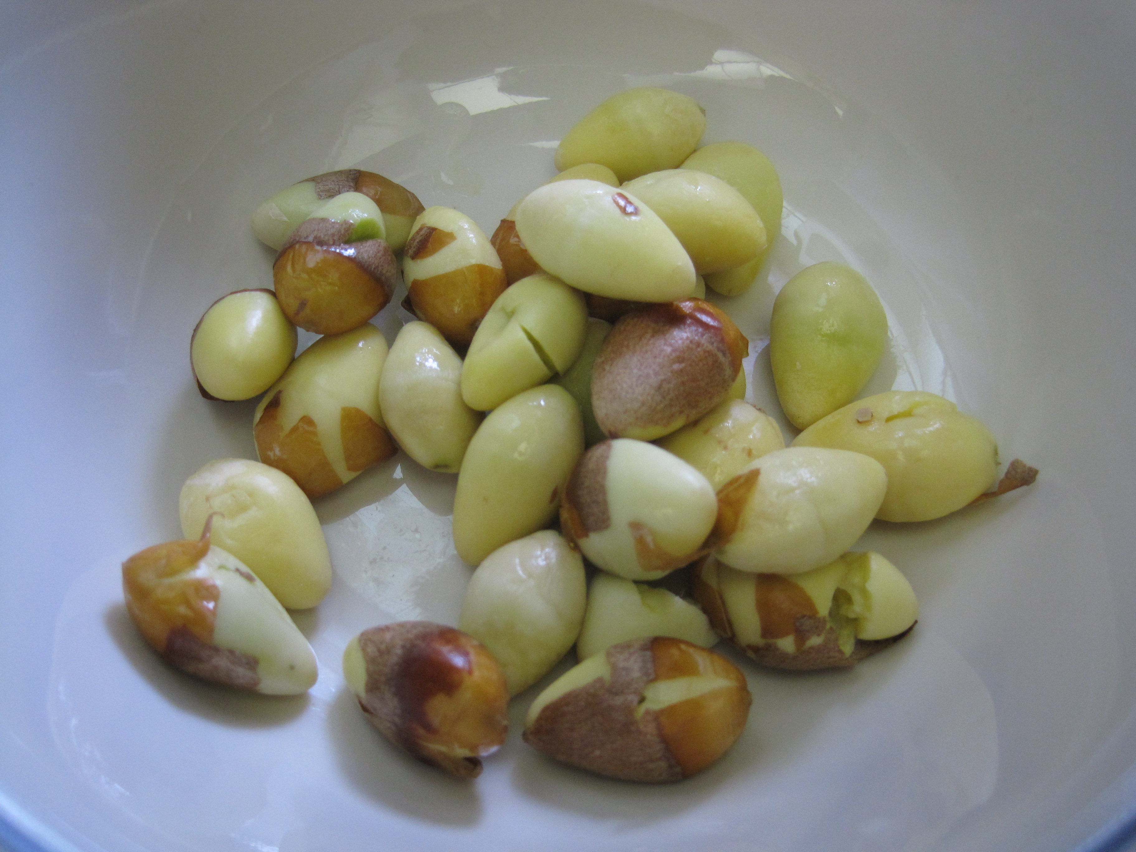 scant 1/2 cup ginkgo nuts, peeled (Note: To peel the ginkgo nuts, place them in a plastic bag and crush them lightly with the flat side of a large cleaver to crack the peels. Then remove and discard the skin.)