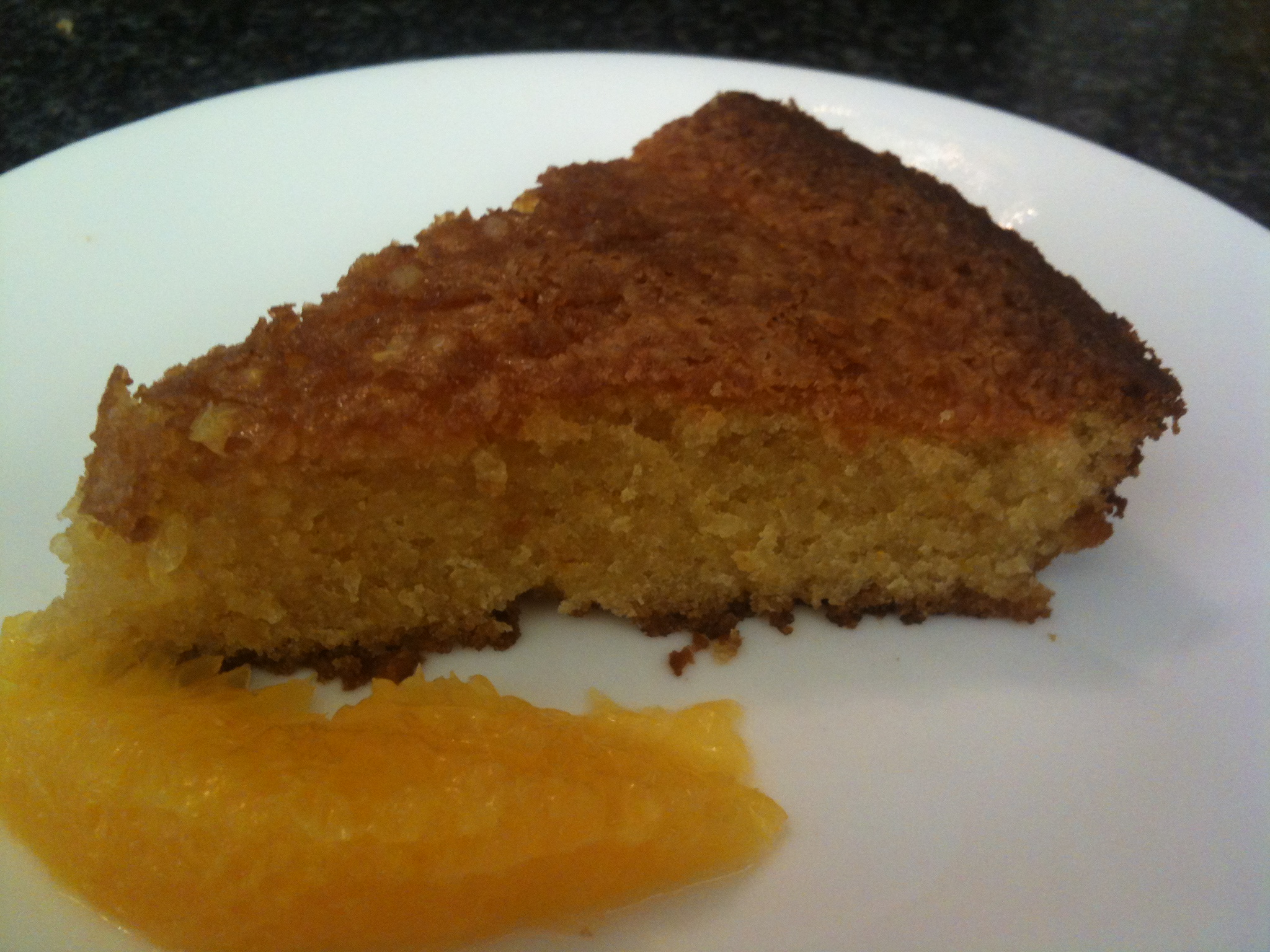 This is another great recipe from the cookbook, The Modern Baker. At first, I was doubtful that this cake would be flavourful enough for my taste, but I was very pleasantly surprised. This sophisticated, citrusy cake is a great finish to a heavy meal. I made it for Thanksgiving dinner. Everyone that tried it really enjoyed it. Even John’s mom, who isn’t normally a fan of cake, liked it. I love that this cake is moist, easy to make, and relatively healthy since it uses olive oil as opposed to butter or vegetable oil. Also, I love the crunchy and slightly sticky crust. This is served as a one-layer cake, but the recipe makes two layers, so you can make these in advance and freeze them for future dinner parties.