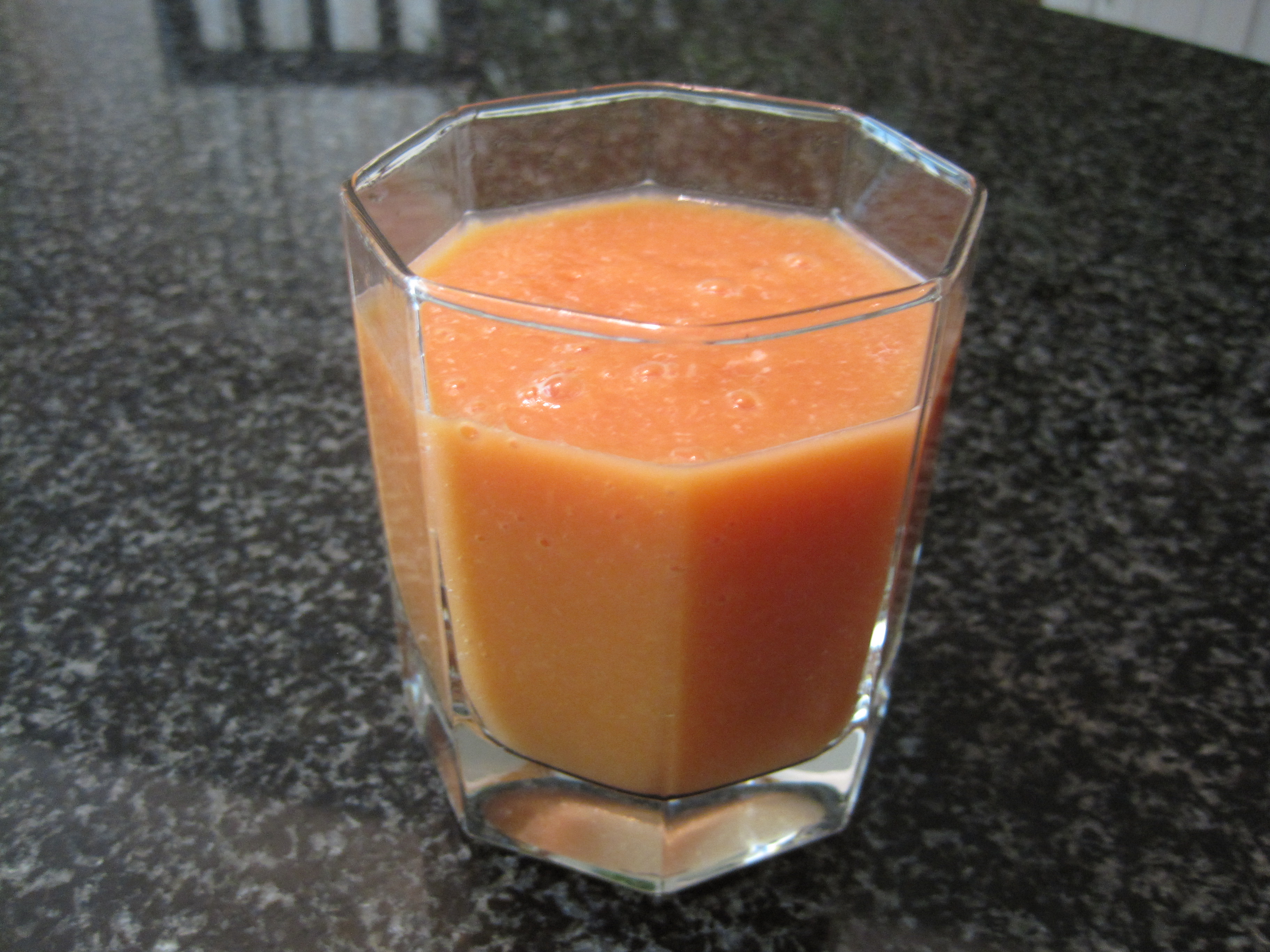 1 cup milk (Note: If you prefer a stronger papaya flavour, feel free to reduce the milk by half. Alternatively, you could omit the milk altogether, and make a papaya juice instead.)