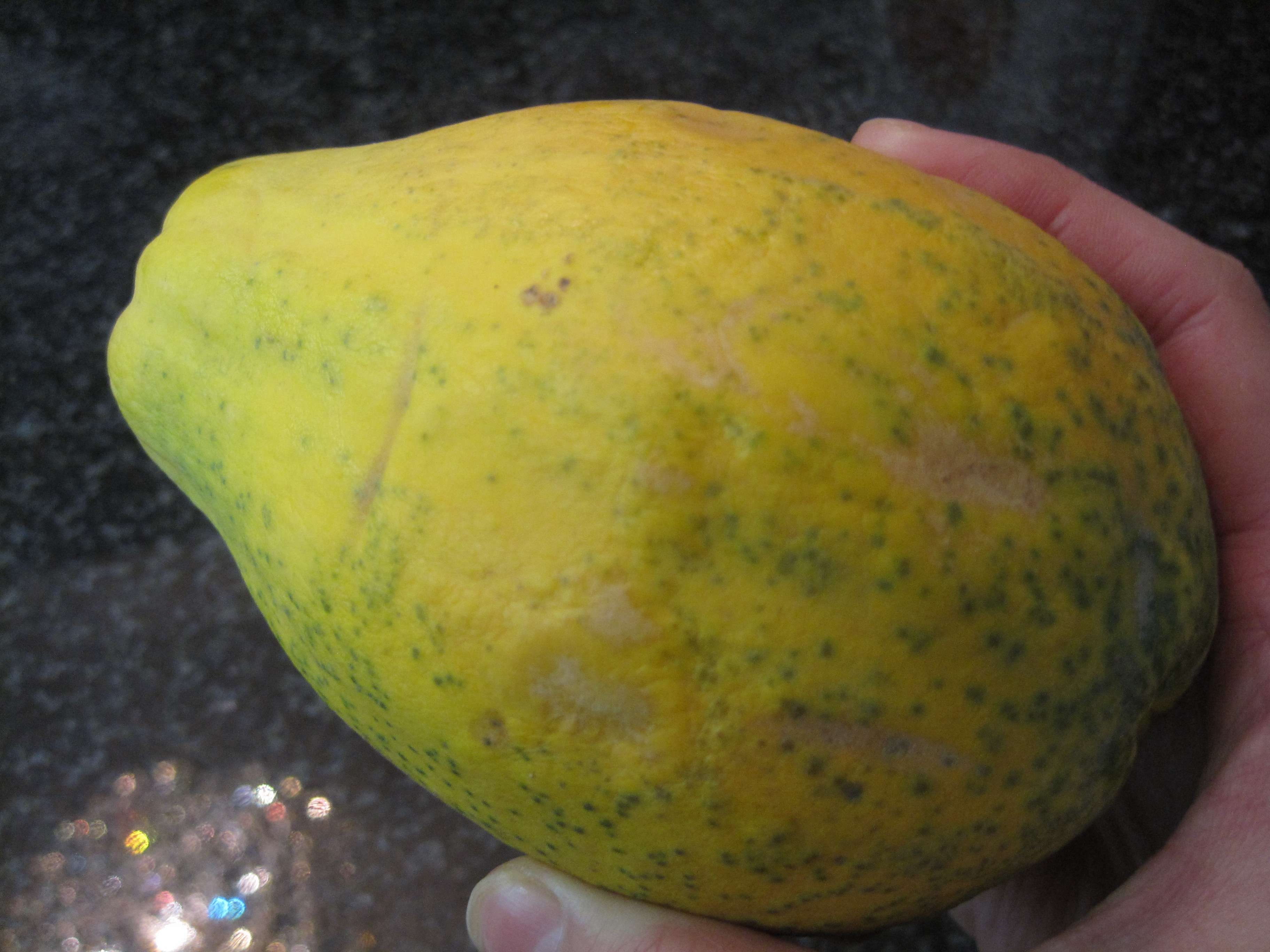 1 medium sized papaya that is overly ripe, to the point where it is almost starting to go bad (Note: I recommend using small, Jamaican papayas, preferred brand is Martha’s Best.)