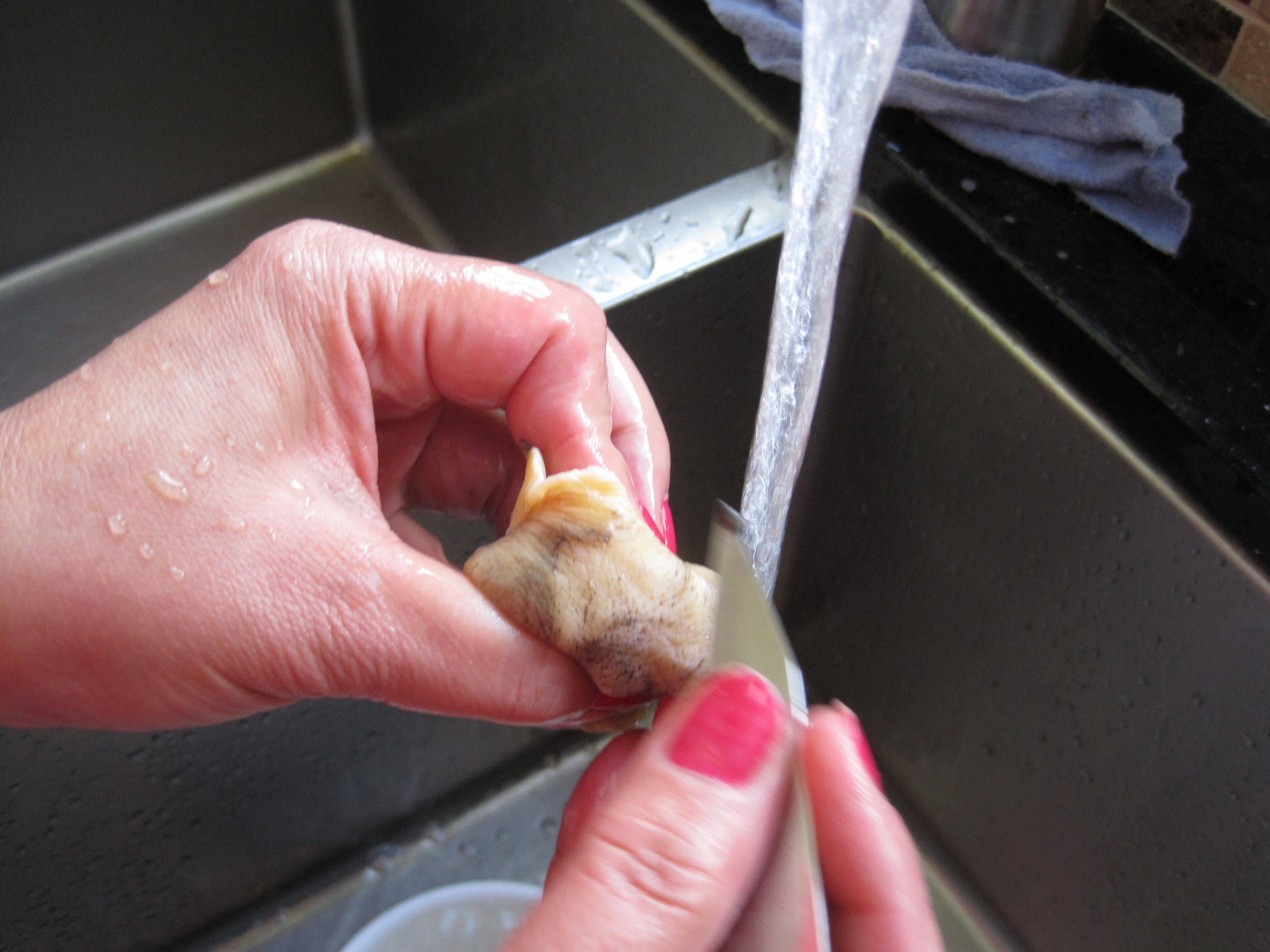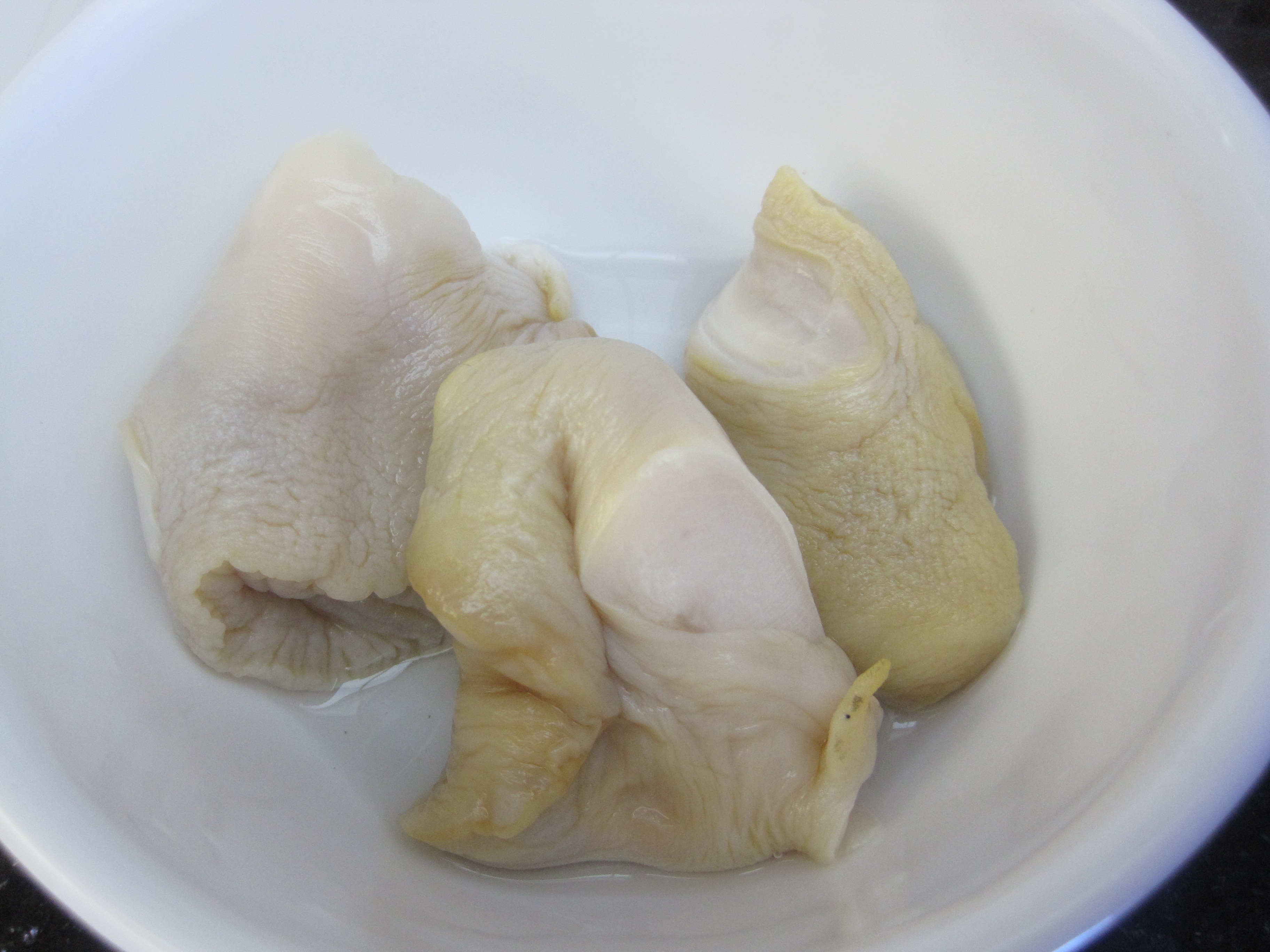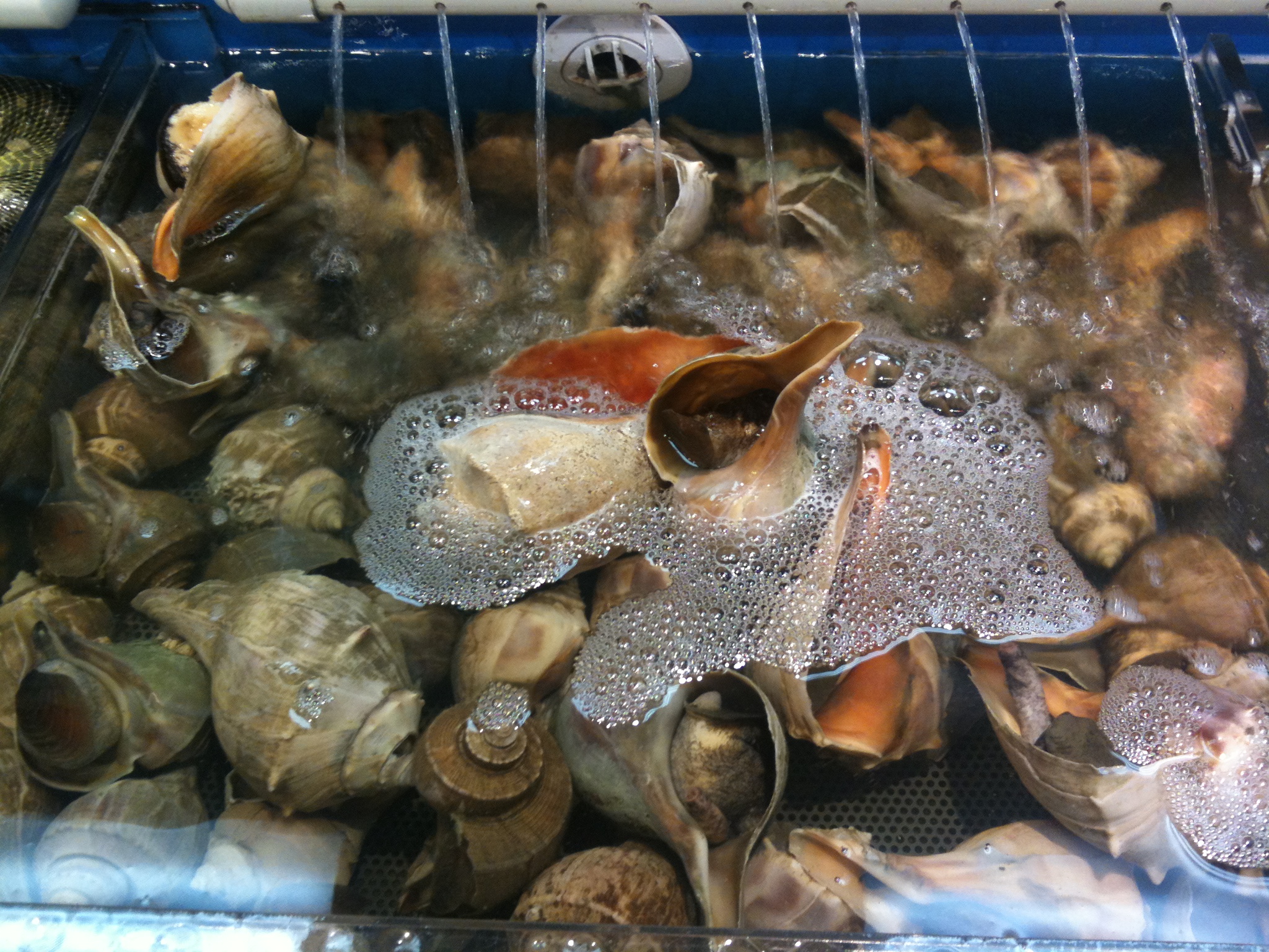 Conch is seafood, and is basically a large sea snail. Conch soup is one of my favourite Chinese soups, because boiling fresh conch until it is soft, but still chewy, is my favourite way to cook it. Conch can also be stir fried, braised, steamed, baked, or BBQ’d whole in its shell. But note that the part of the conch that is found on the inside of the shell is the most tender, so use this part for quick cooking. The ‘head’ of the conch is better used for soup, as it is quite a bit tougher. Be sure to use fresh, live conch. When you’re in the grocery store, poke the muscle (or ‘head’) of the conch (not the shell). If it retracts into its shell, then it is alive. The faster it moves, the better. Ask the staff to remove the shell for you. The type of conch that we use for this soup is shown in the photo below.