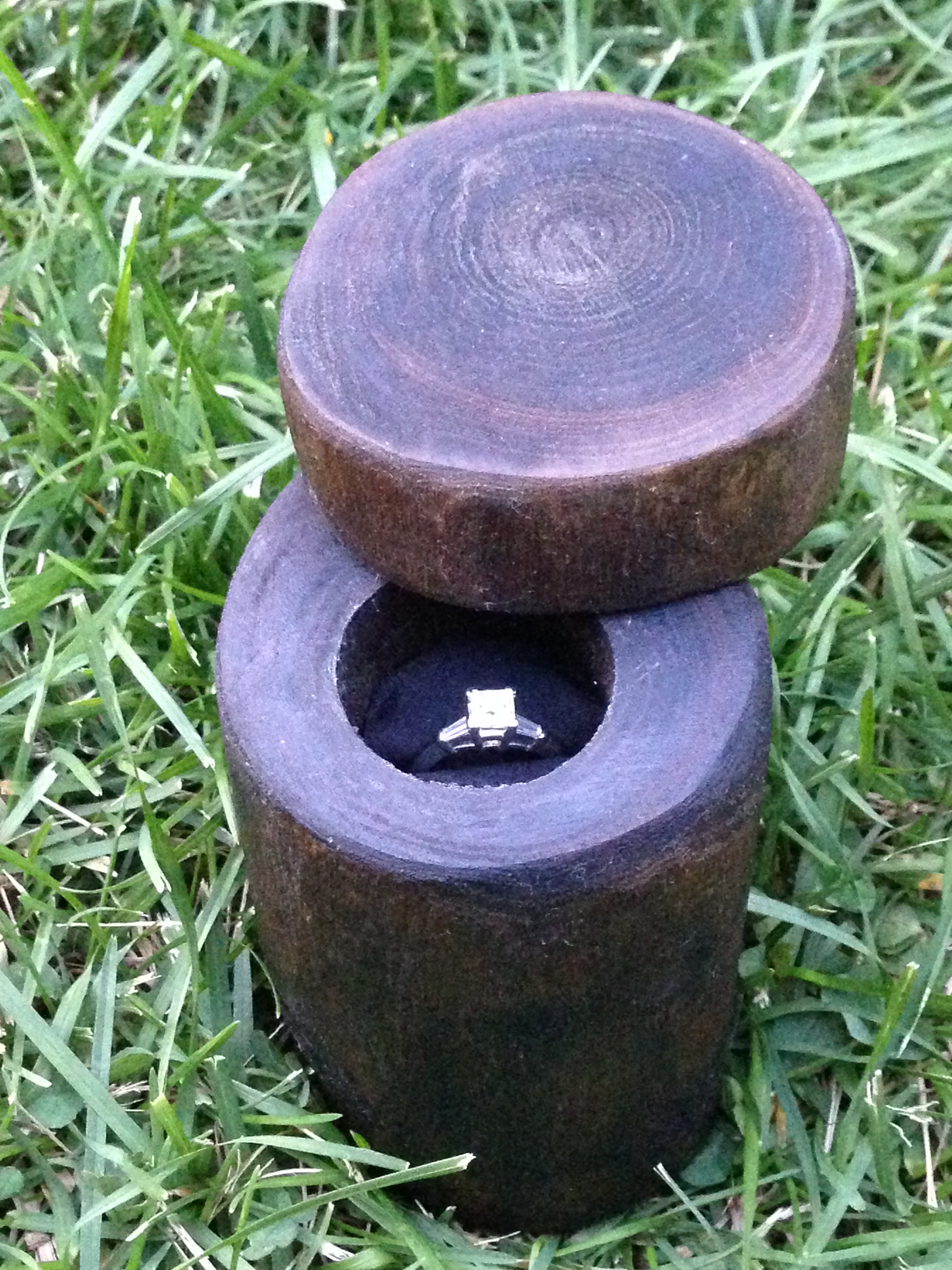 The inspiration for making a wooden ring box came to me while I was planning my proposal.  I wanted the proposal to be low-key and sentimental with some sort of unexpected component.  I knew that Alison loves the process of making things from scratch, as evident on this blog, so I came up with the idea of using something handmade for the proposal.  I focused on woodworking projects, because Alison loves reclaimed wood and restored wooden furniture.  Through a Google search, I found a few wooden proposal ring boxes, but this one caught my eye where someone made a ring box out of a tree branch.  I really liked it, because it looked really natural and earthly, and the lid swiveled open to reveal a hidden ring.  The article had good pictures, but it didn’t include step by step instructions on how to make it.  So, I went back on Google and found The Shop, a local woodworking and metal shop that allows people to use their equipment for a nominal fee.  The Shop also offers regular classes on various DIY projects.  I went to see the facilities and met the shop owners, Michelle and Marissa.  They were very friendly, accommodating, and incredibly helpful when explaining to me the steps and tools that I would need to make my ring box.  Luckily for me, this project only requires a beginner’s level in woodworking.
