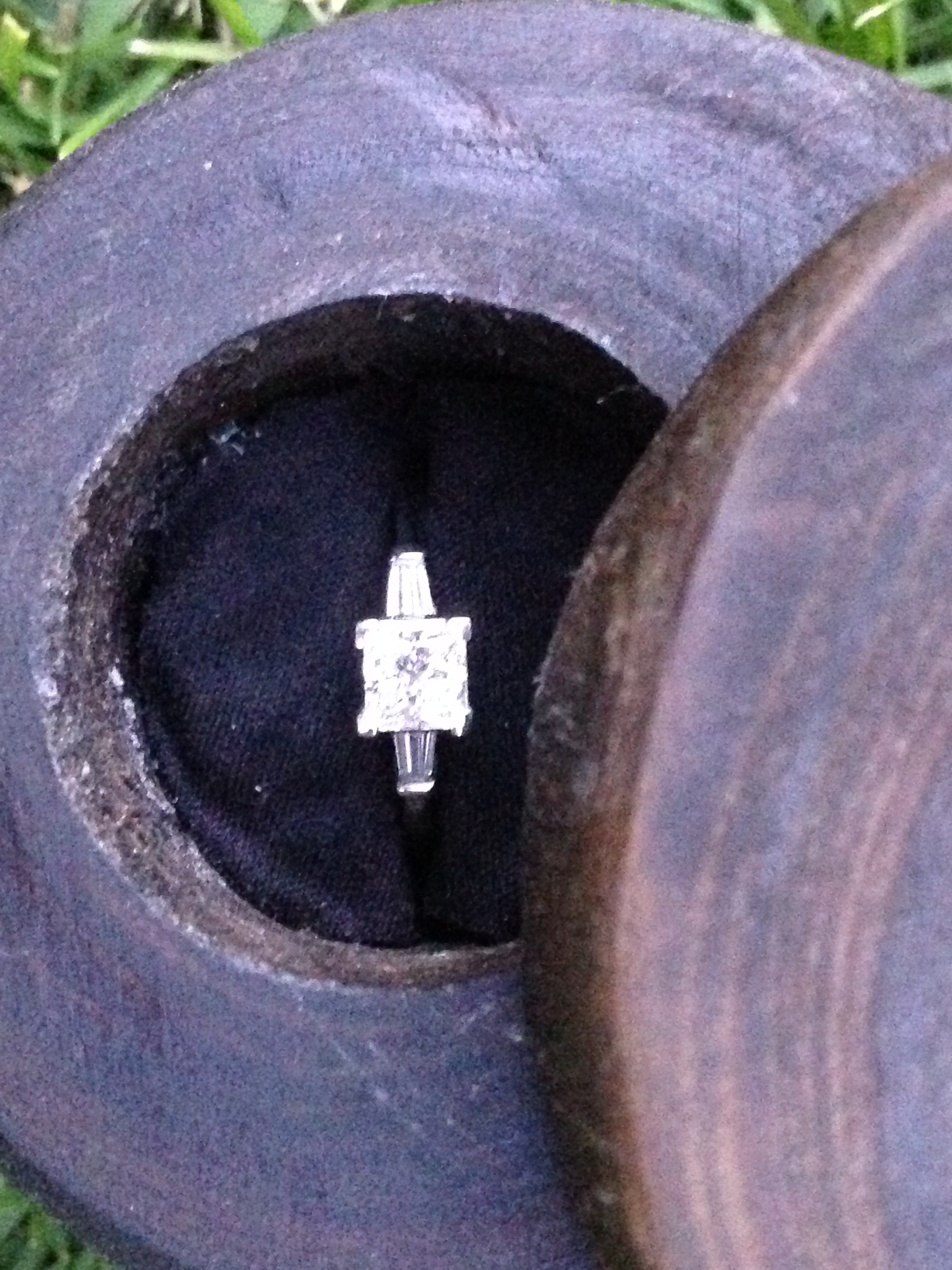 When John proposed to me this summer, he presented the engagement ring in this wooden ring box.  I instantly loved the ring box and was even more blown away when I learned that he made it himself.  So I asked him to share the DIY instructions on Cooking with Alison’s first guest post.  Don’t worry if you don’t own any tools, because John doesn’t either.  He shares below how he was able to get access to tools and woodworking help for very little money.