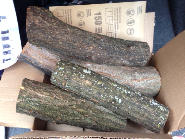 1. Wood Log:  I used a wood log/branch of about 5 cm in diameter.  I got the tree branch for free by searching kijiji.ca for people that were giving away free firewood within my neighbourhood.  I had tried to look for dead wood branches, but felt that the wood was too brittle to make into a ring box.  I recommend using a soft wood like cedar or spruce to make it easier to cut.   I also recommend finding wood that hasn’t fallen off the tree for too long, or else it could splinter and shatter when cut.  You might want to choose two or three logs/branches to work with, in case something goes wrong when you’re cutting one of them.