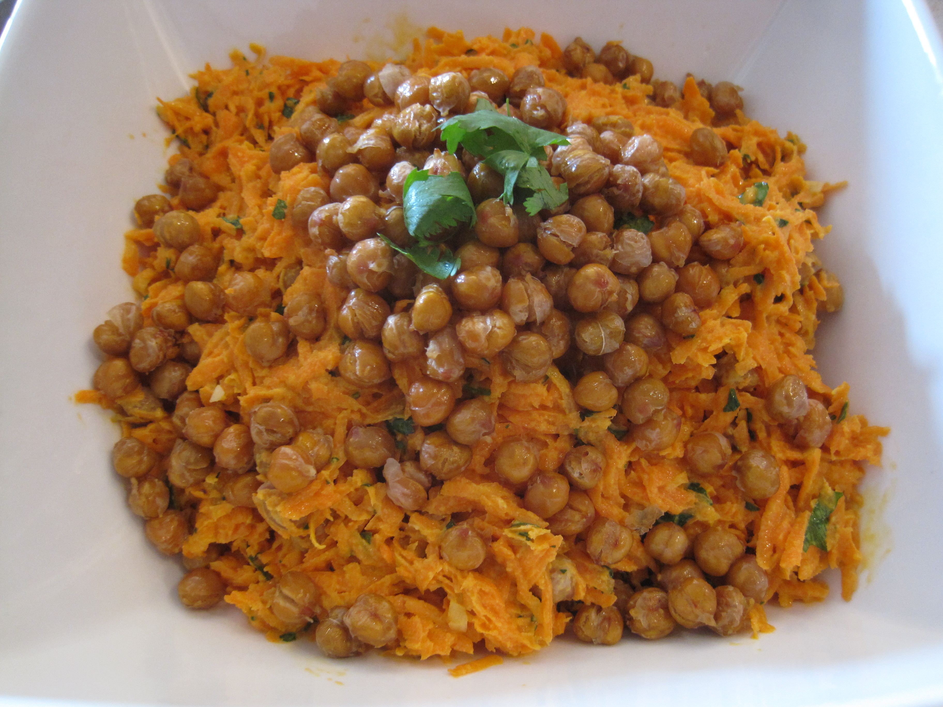 Place the grated carrots in a large bowl. Add most of the chopped parsley and toss in the dressing. Add more salt and pepper to taste if needed. Store the salad in the refrigerator until ready to serve. This can be made up to 2 days in advance. Just prior to serving, add as many of the roasted chickpeas as you’d like. Sprinkle over the nuts and remaining parsley as garnish. Serve cold or at room temperature.
