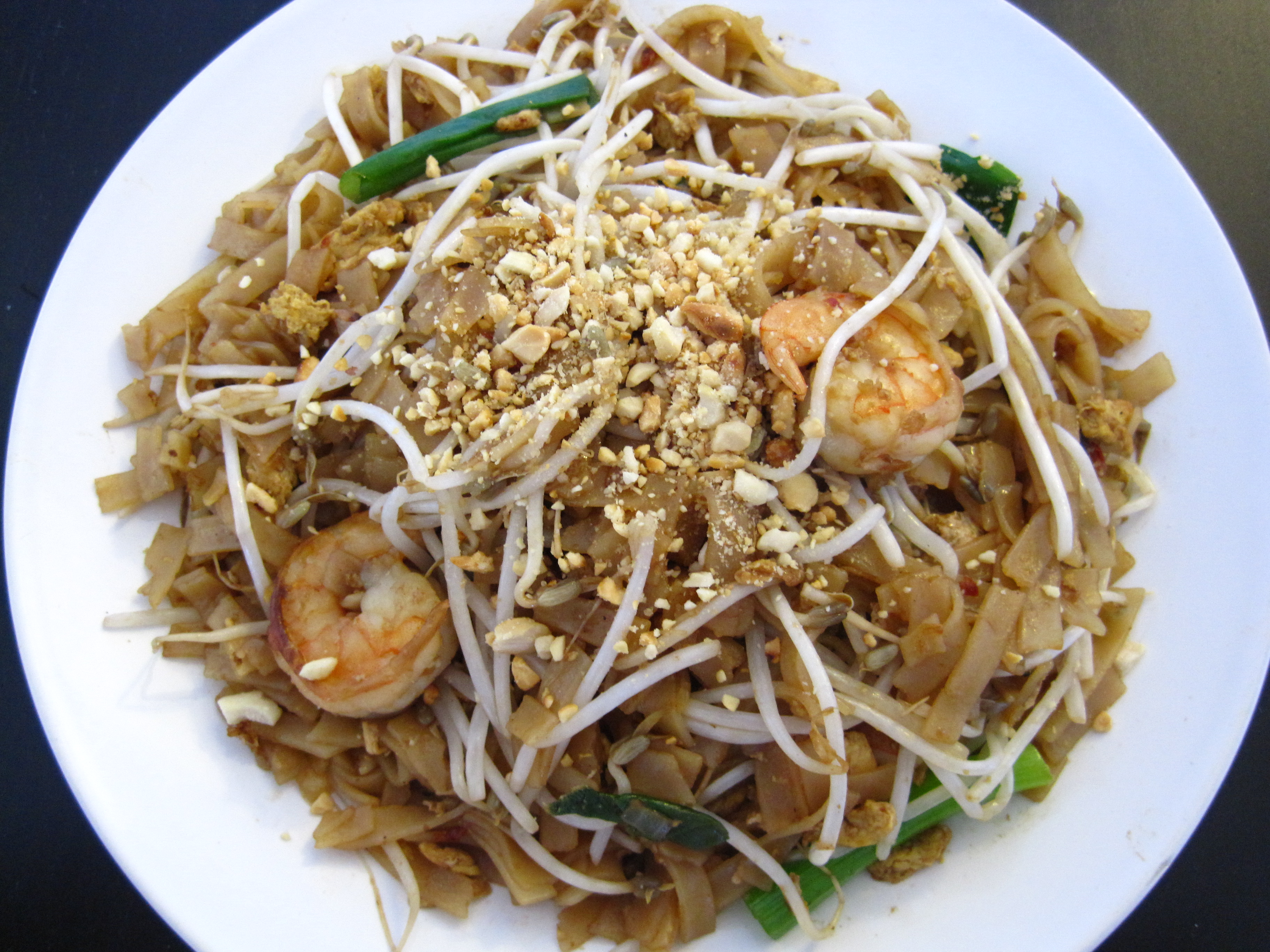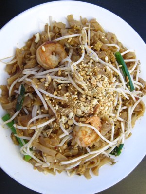 In Rice and Noodle Dishes on January 11, 2011 at amThere are so many different ways to make pad thai authentically, that it really annoys me when restaurants don’t make it properly. The worst is when the “pad thai” is made with a thick, red coloured sauce. I rarely order it so as to avoid disappointment. Luckily, pad thai is very easy to make at home. It usually contains rice stick noodles, bean sprouts, Chinese chives, fish sauce, and sugar. White vinegar or tamarind are used in Thailand for the sour component of this dish. More information on tamarind has been posted here. Depending on the street vendor, other varying ingredients include eggs, tofu, pork, dried shrimp, fresh shrimp, preserved raddish, and/or dark thick soy sauce, etc. So add whichever ingredients you like. Ed and I prefer a mildly and lightly flavoured pad thai, but you can adjust the sweet and sour balance of the recipe below to your preference.