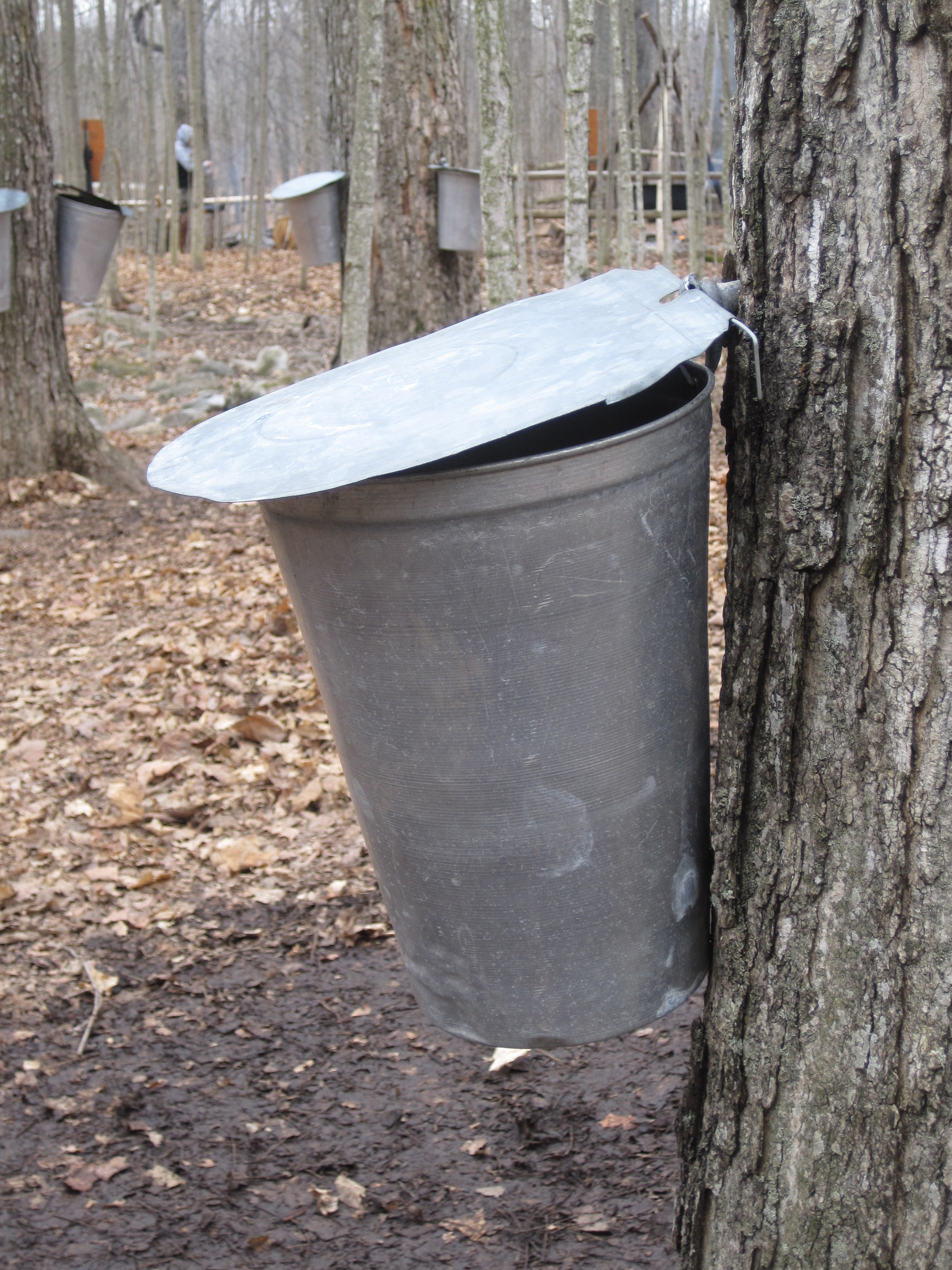 Photo above: The sap from maple trees is collected in these buckets.