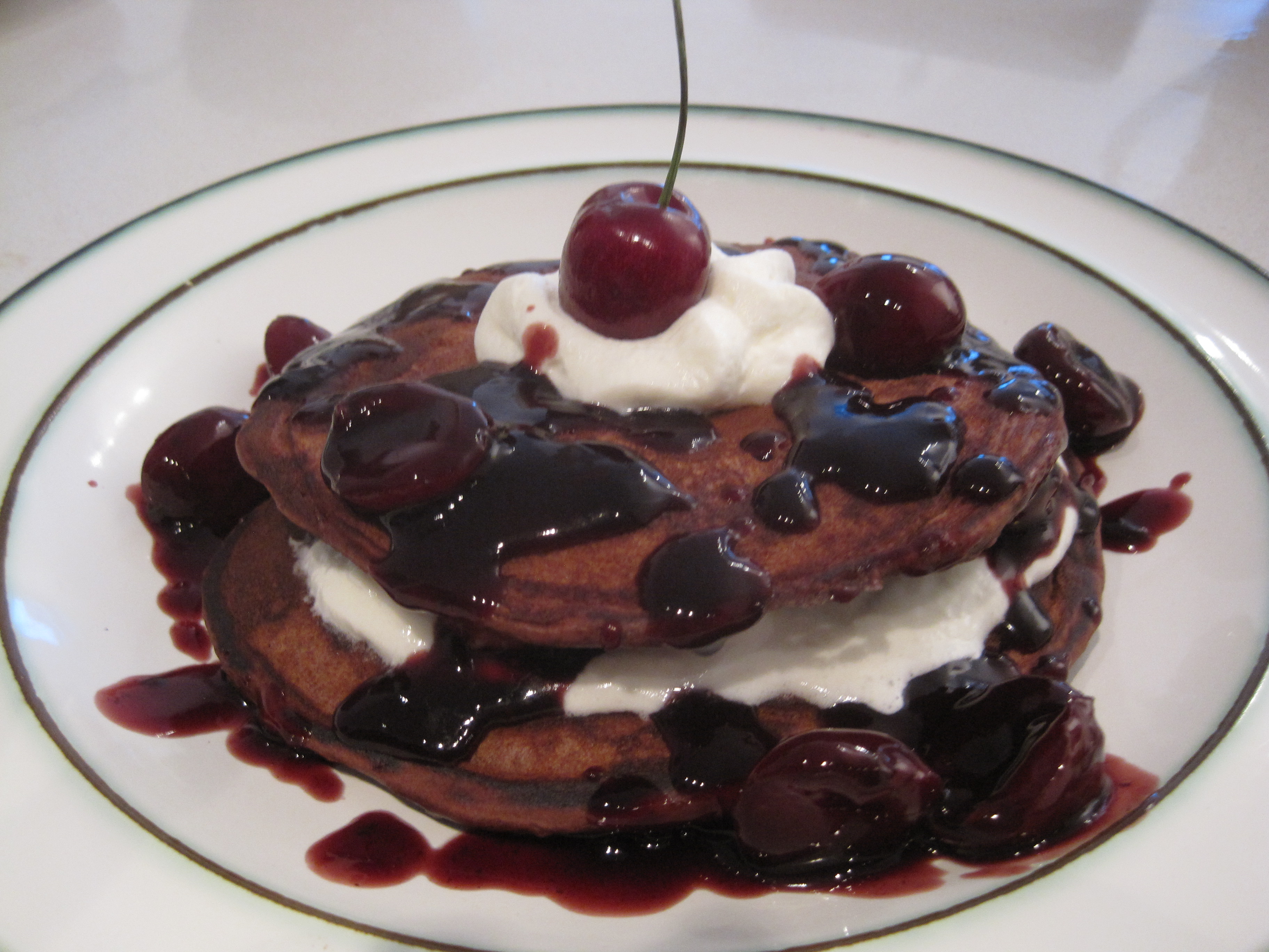 Black forest pancakes (Note: The black cherry sauce looks too thick, because it had cooled by the time I took this photo. It had a nicer, runnier consistency when it was still warm.)