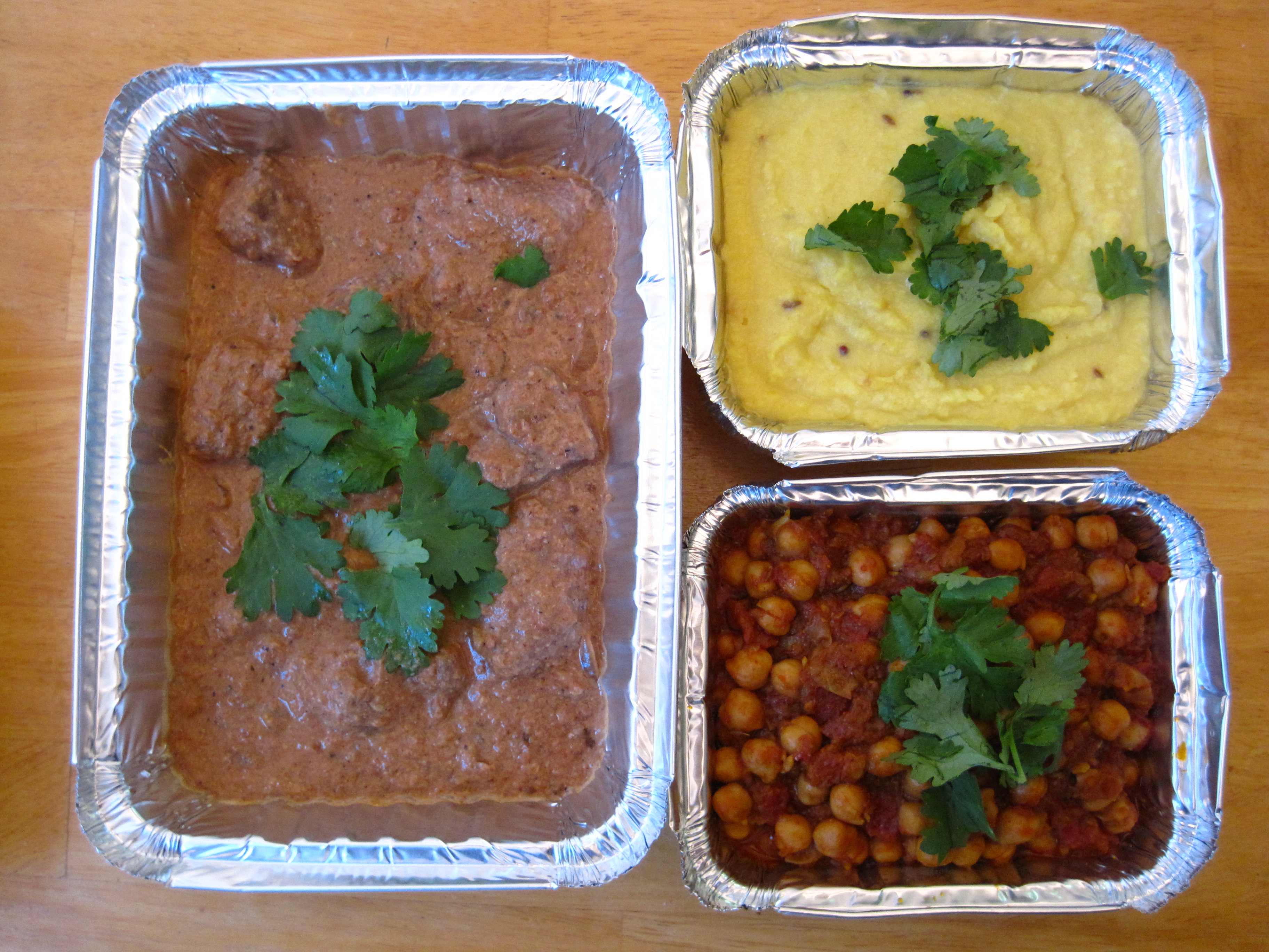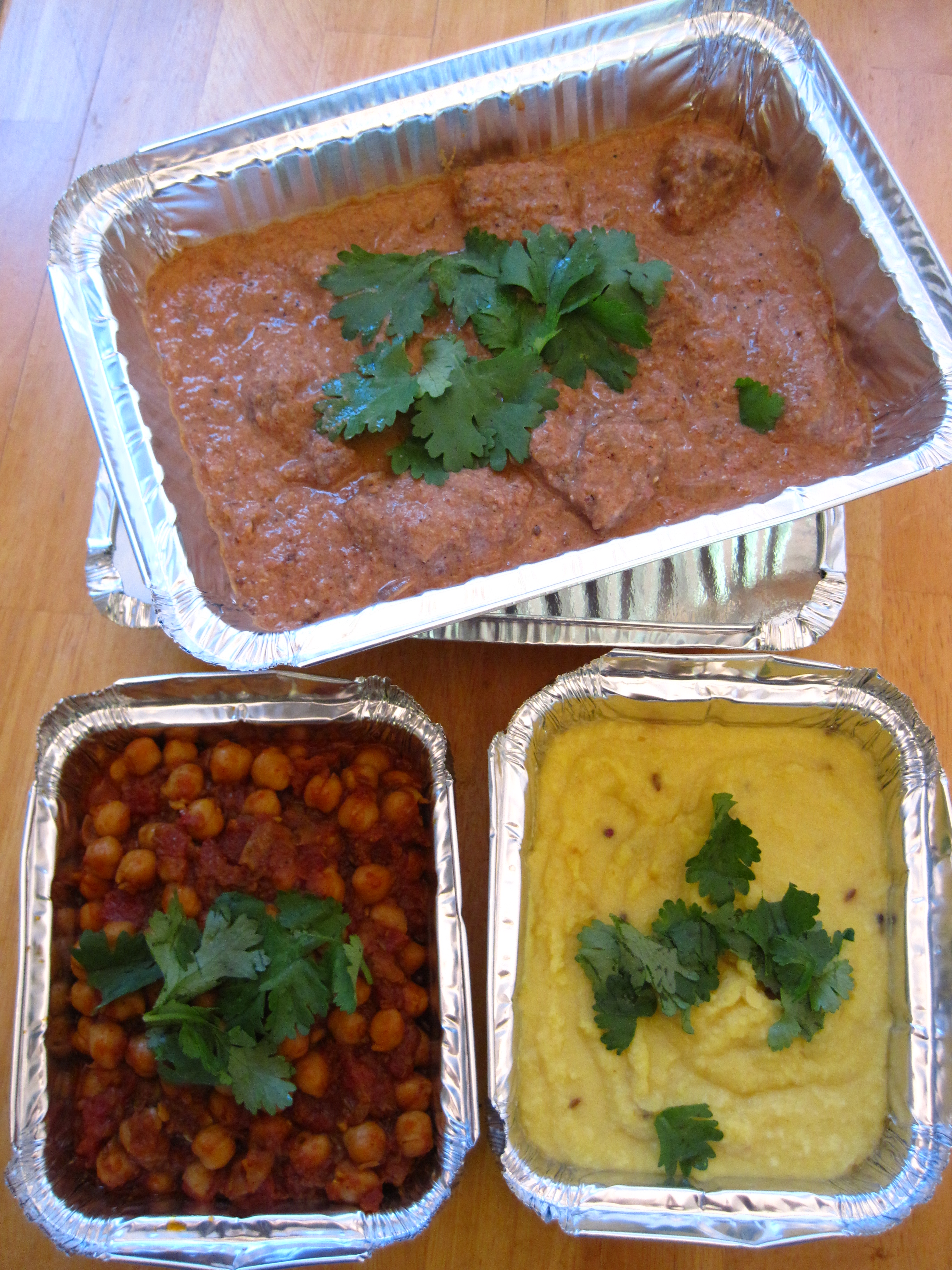 Photo above: I was making homemade Indian take out for my friend’s birthday. Pictured are beef “borma”, tarka dall (lentils) and chana masala (chickpeas).