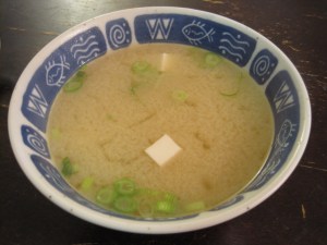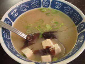 In Asian, Soups, Soups and Salads on January 4, 2011 at amMiso soup is a simple Japanese soup that consists mainly of dashi stock and miso paste. Miso paste is available in a variety of colours (ie. yellow or red) and flavours (ie. salty or sweet). Additional ingredients, such as seaweed, tofu, mushrooms, and/or pork, are often added to this soup. Although instant miso soup powders are widely available, this soup is very easy to make (minus the MSG and preservatives). Traditionally, wakame is the seaweed of choice, but this time, I used dulse, a red seaweed that I bought in Halifax, Nova Scotia, Canada (photo below). See my post on how to use dulse here.
