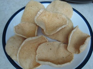 In Appetizers, Hors D'oeuvres, Snacks, How-To, Other Asian Foods on January 11, 2012 at amShrimp chips (also known as prawn crackers) are light, puffed up, crunchy snacks that are very popular all around the world. In some North American Chinese restaurants, multi coloured (with food colouring) “shrimp chips” are served atop a deep fried whole chicken, but those shrimp chips almost never have any real shrimp in them. They taste like styrofoam and don’t resemble the real thing in flavour or in texture. The best shrimp chips in the world, in our opinion, are made in Brunei. It’s been many years since any of us were in Brunei, and I thought that I might never taste their shrimp chips again, until I discovered how easy they are to make at home. Malaysian shrimp chips are a very close second best in my opinion.