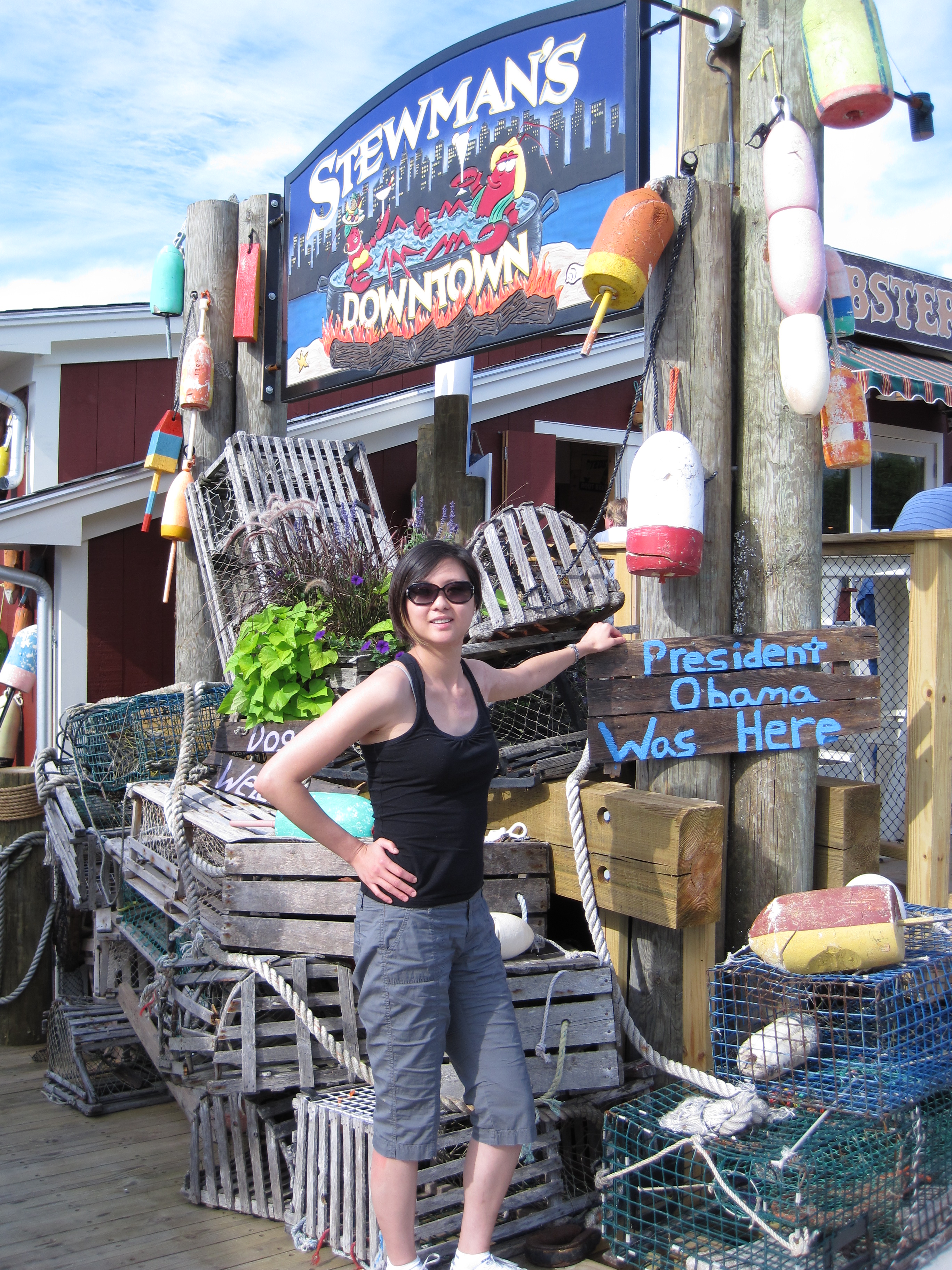 In Random, Reviews on October 10, 2010 at amBar Harbor, Maine, USA, was one of the ports of our New England cruise. Completely by chance, my sister and I found the restaurant, Stewman’s Downtown. Underneath the Stewman’s sign, the words “President Obama Was Here” had been written on a few wooden planks. When a staff member confirmed that US President, Barack Obama had indeed dined at Stewman’s Downtown, we immediately asked for a table, even though we were risking not making it back onto the cruise ship in time. I was crazy excited about eating at a restaurant where Barack Obama once dined. It’s too bad that our actual dining experience wasn’t great. Here is our mixed review of the restaurant, Stewman’s Lobster Pound, the downtown location. Note that I’ve also thrown in a review of a raw bar in Bowen’s Wharf, Newport, RI.