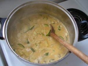 In Other Asian Foods on March 12, 2010 at pmThai green curry is spicier than the red and yellow curries. (See my Thai Red Curry post.) I know this green curry doesn’t look very appetizing – in fact, I served it as “swamp sludge” at a Halloween party once 😉 – but it’s my personal favourite thai dish. Sometimes I make this vegetarian and it’s the only vegetarian dish that doesn’t leave me craving meat. I ate the eggplant and bamboo shoot green curry dish at a local Thai and Cambodian restaurant every day for about a month before I finally stopped being lazy and figured out how to make it myself. Thai curries are incredibly easy to make at home and, like a Chinese stir fry, you can use any combination of meat and vegetables you happen to have on hand. These freeze well too.